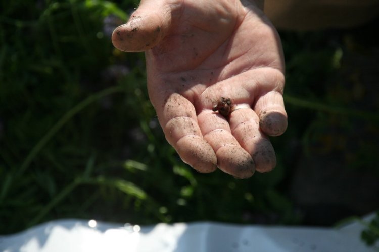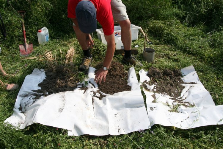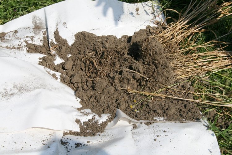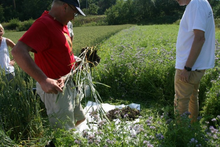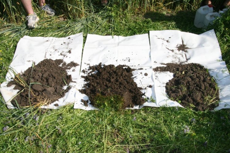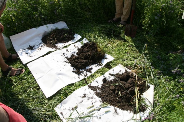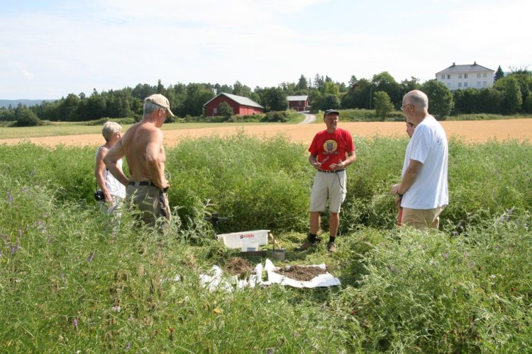 Fylkesagronom Øystein Haugerud tok jordstrukturprøver slik at delegasjonen kunne se med det blotte øyet forskjellen på jorda der det var tilsådd eng, kontra konvensjonell åker. Resultatet var ganske tydelig. I blomsterenga fant de en bedre sammensetning av ulike aggregater og gammel halm var tydelig bedre omdannet. I tillegg var forekomsten av meitemark større.