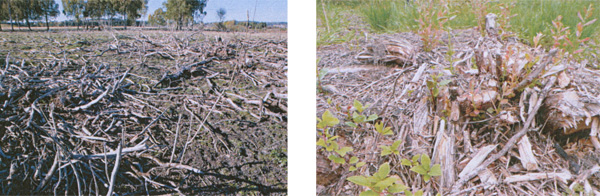 Rusk og rask etter skjøtsel (t.v.) og seljestubber med nedbeita rotskudd